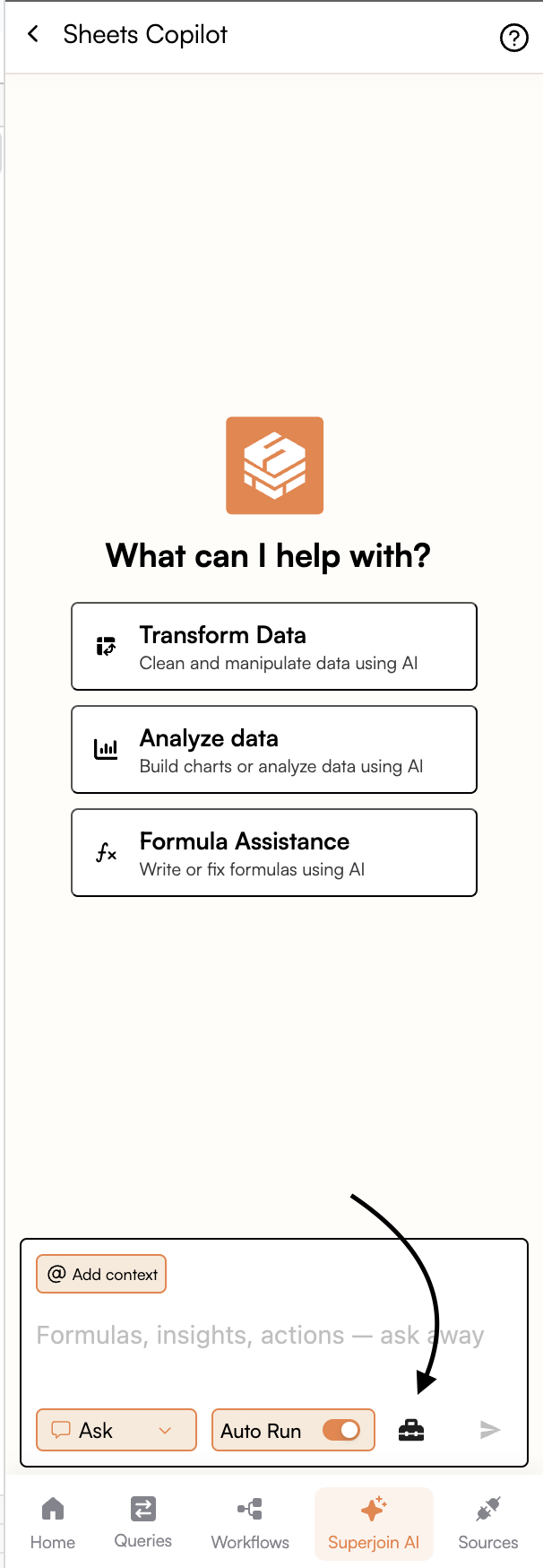 Superjoin’s Sheets Copilot supports Model Context Protocol (MCP) integration, allowing you to connect to external data sources and services directly from Google Sheets. This powerful feature enables you to pull data, perform complex analysis, and execute operations without leaving your spreadsheet environment.Getting Started