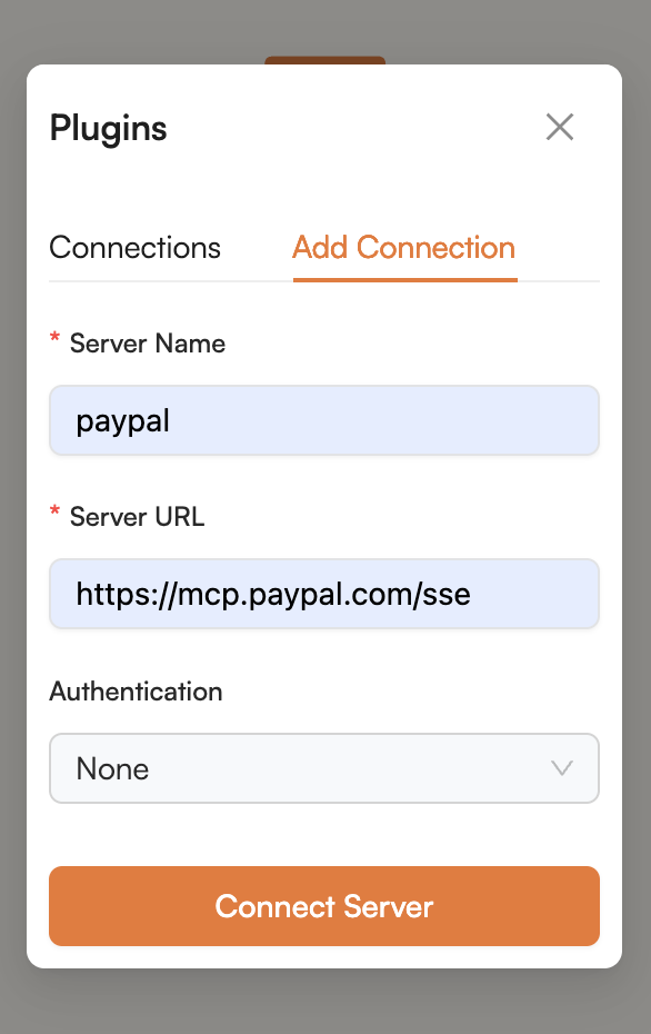 - Enter the complete MCP server URL
