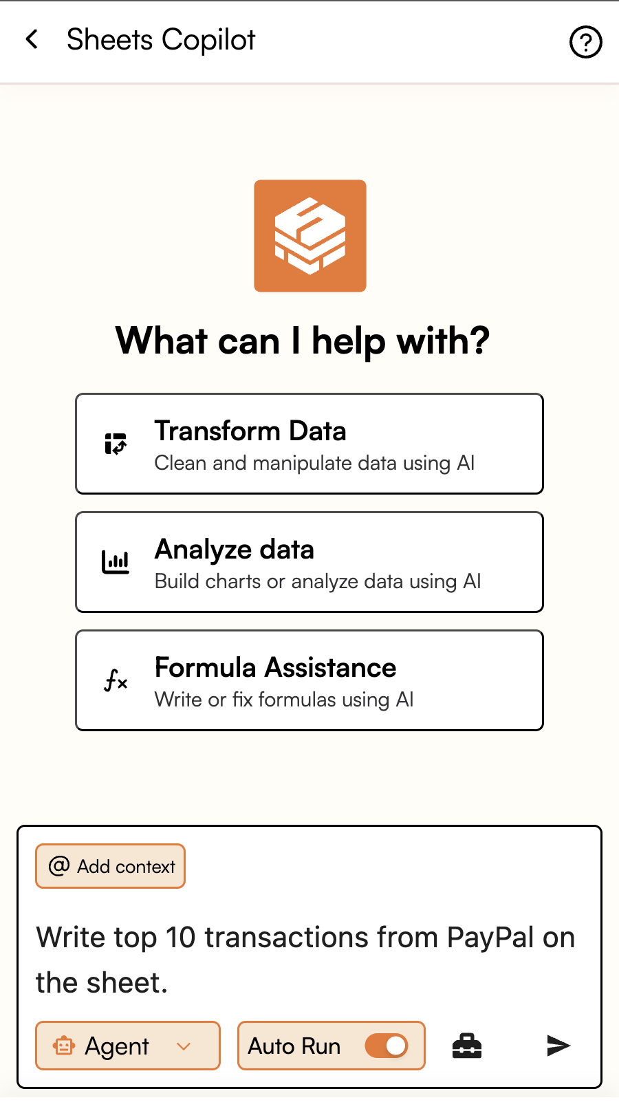 - The Sheets Copilot interface will open