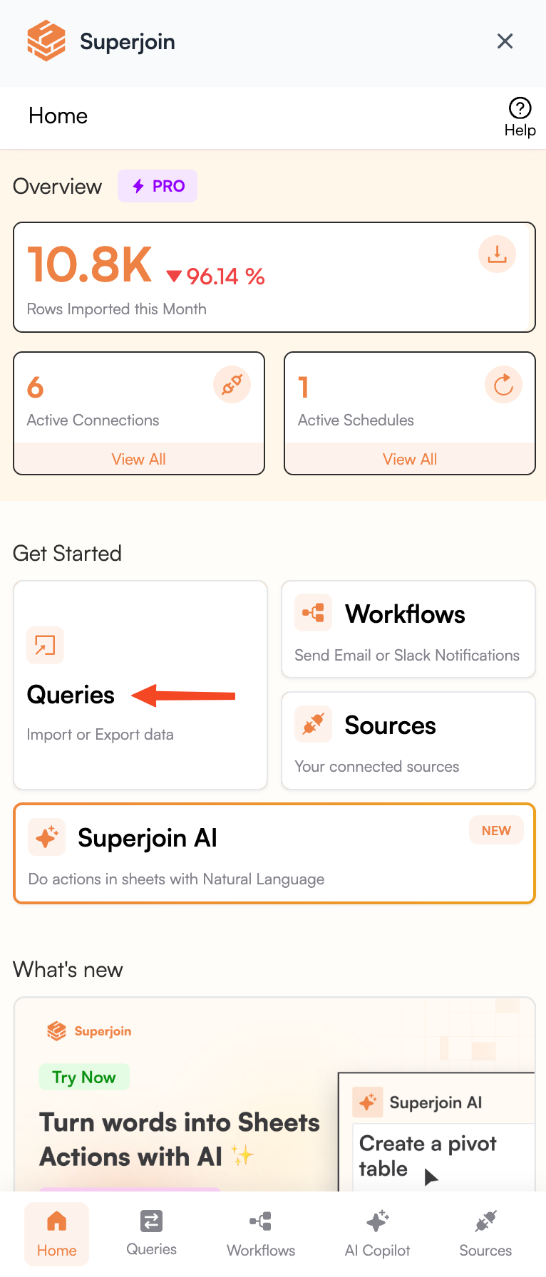 Open Superjoin by clicking on the icon that is on the top right of your Google Sheets.