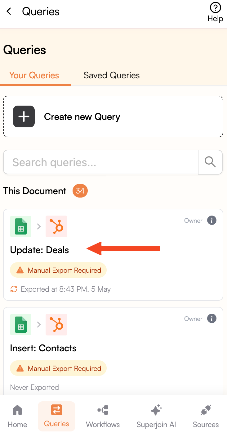 Click on the “Queries” button in the homepage to access the Queries tab.