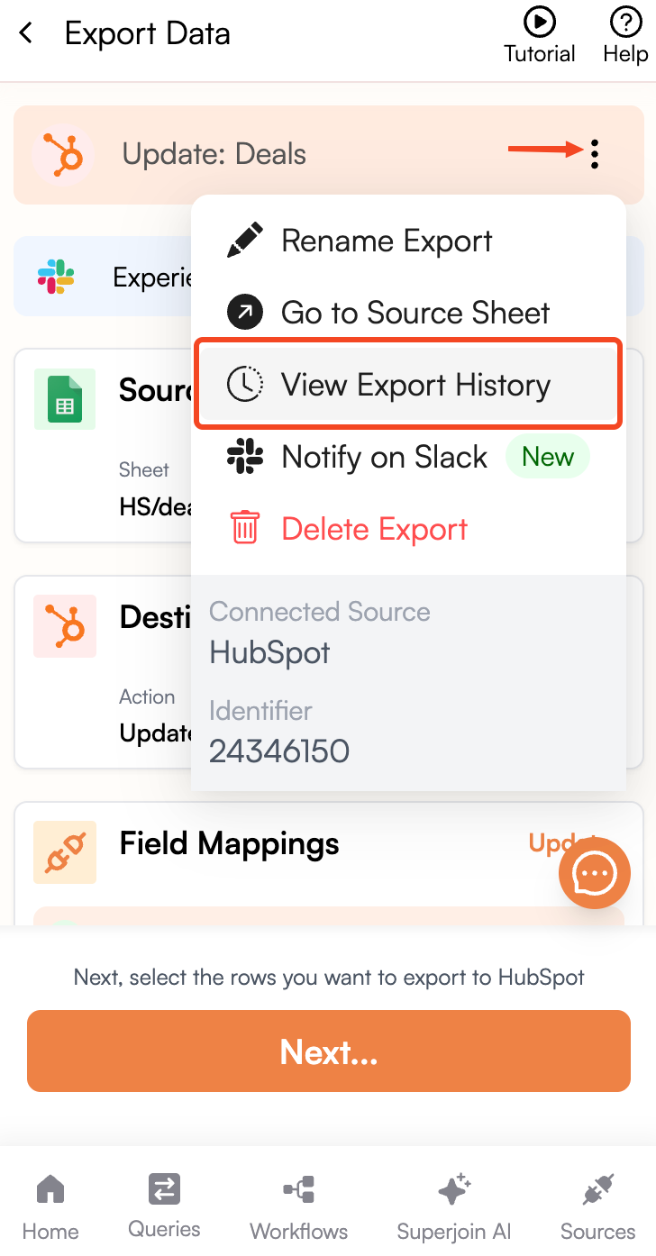 Click on the 3 dots on the top right and select “View Export History” from the dropdown.