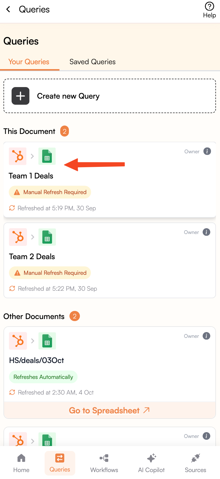 Click on the “Queries” button in the homepage to access the Queries tab.