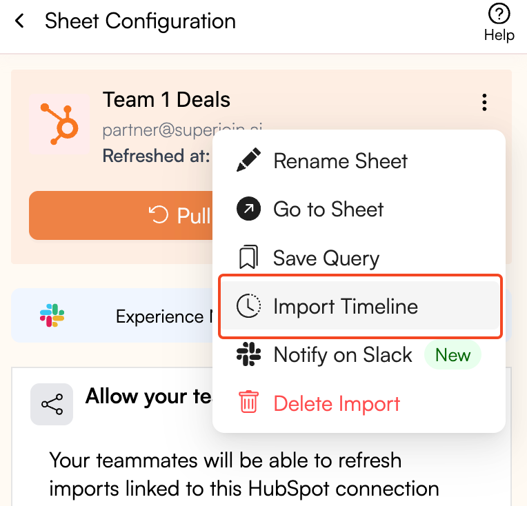 Click on the 3 dots on the top right and select “Import Timeline” from the dropdown.