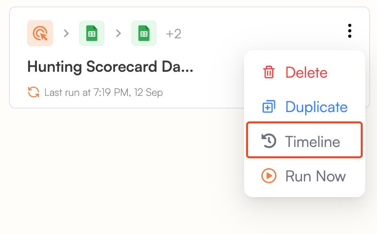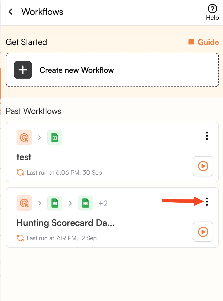 Click on the 3 dots next to the Workflow that you want to see the history for.
