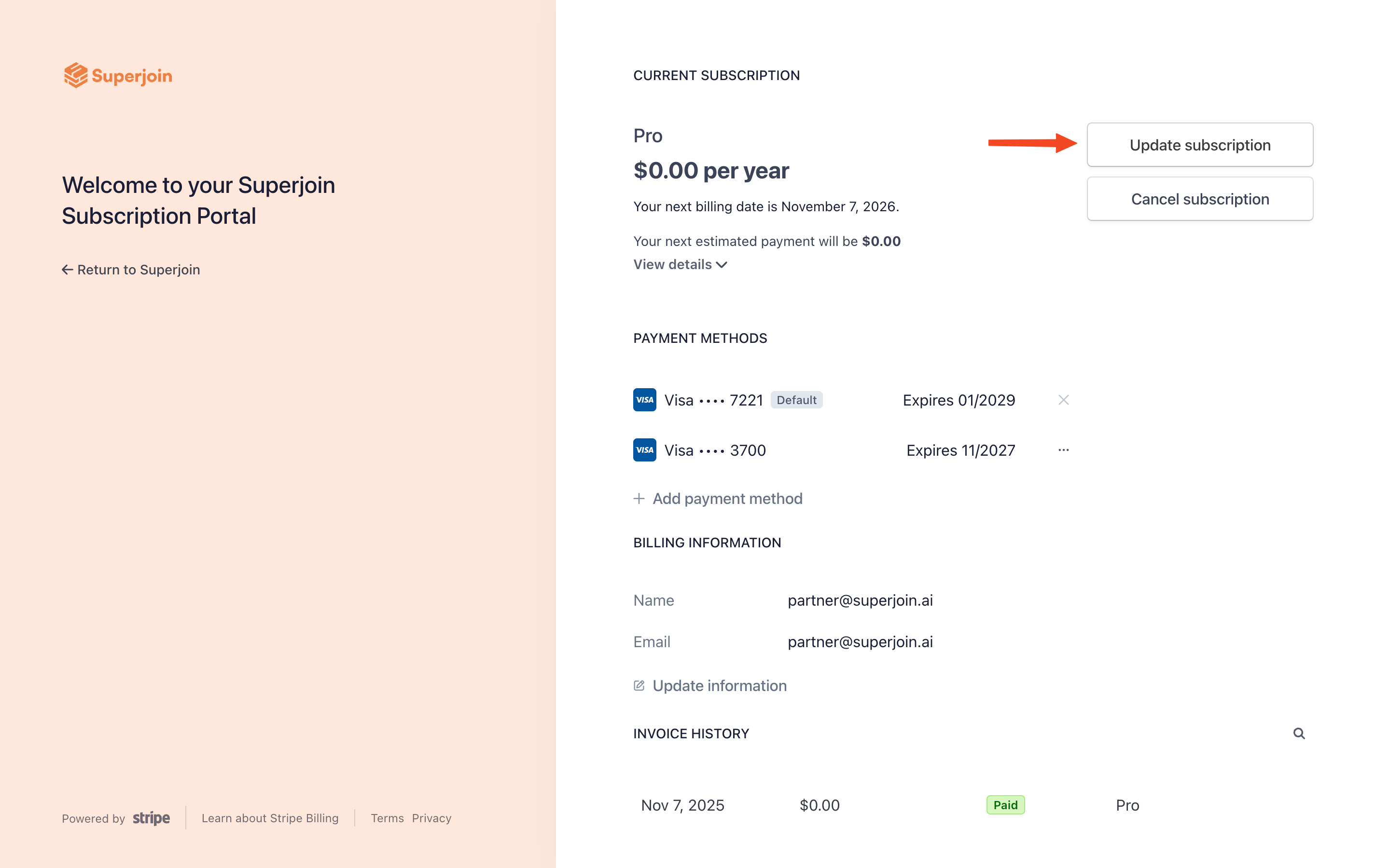 Congratulations! You have successfully upgraded or downgraded your Superjoin Plan and can now enjoy its benefits.