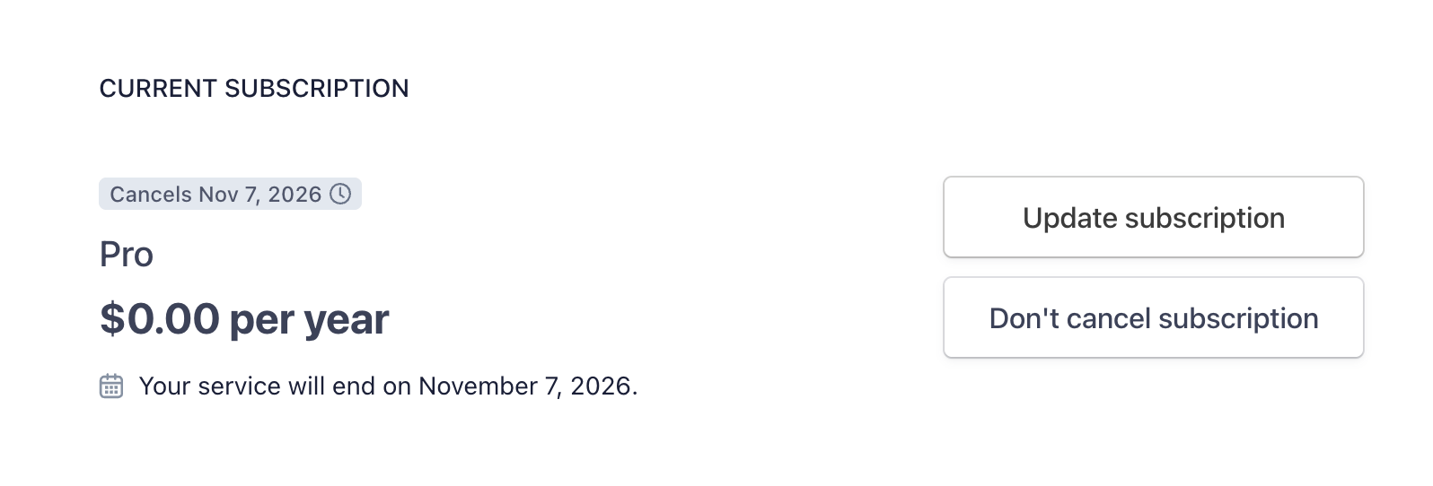In the Account Management Dashboard, click on the “Don’t Cancel Subscription” button on the top right of the screen.