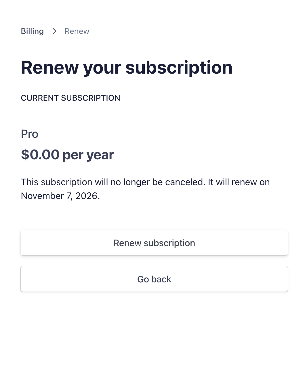 Click the “Renew Subscription” button in the confirmation page to finalize the renewal.
