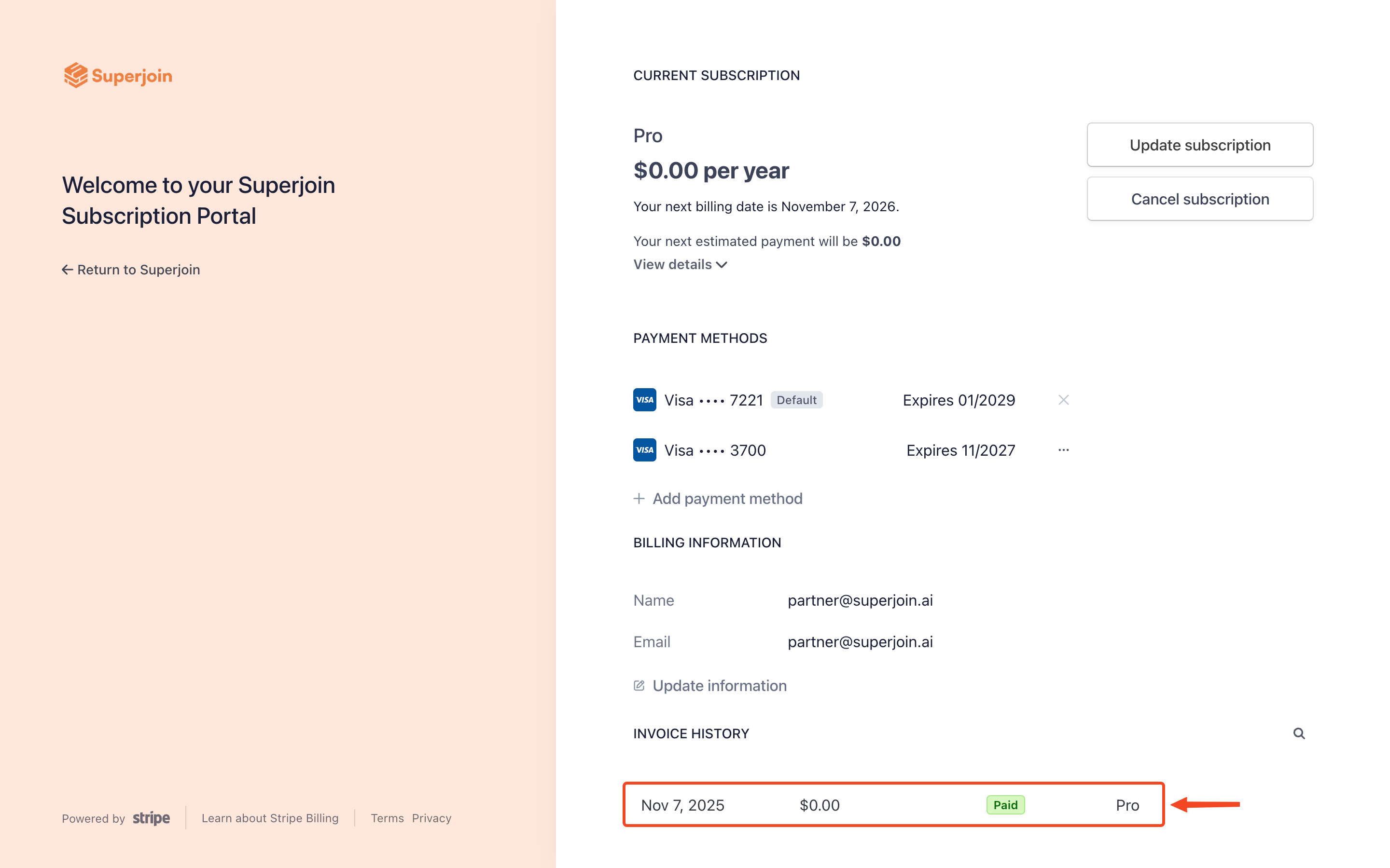 Congratulations! You have successfully viewed your past invoice for your Superjoin subscription.