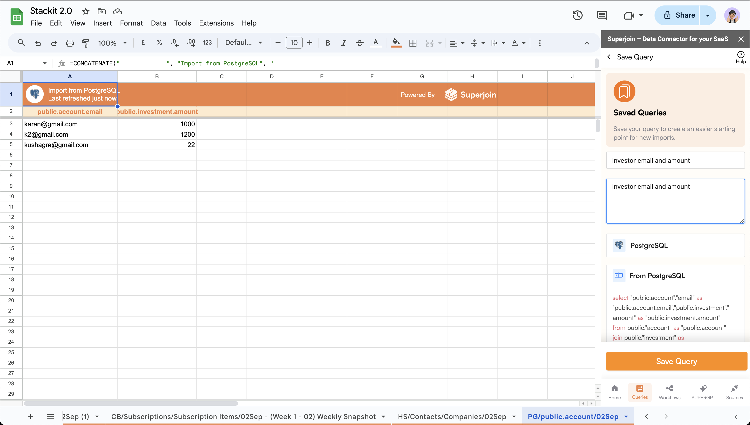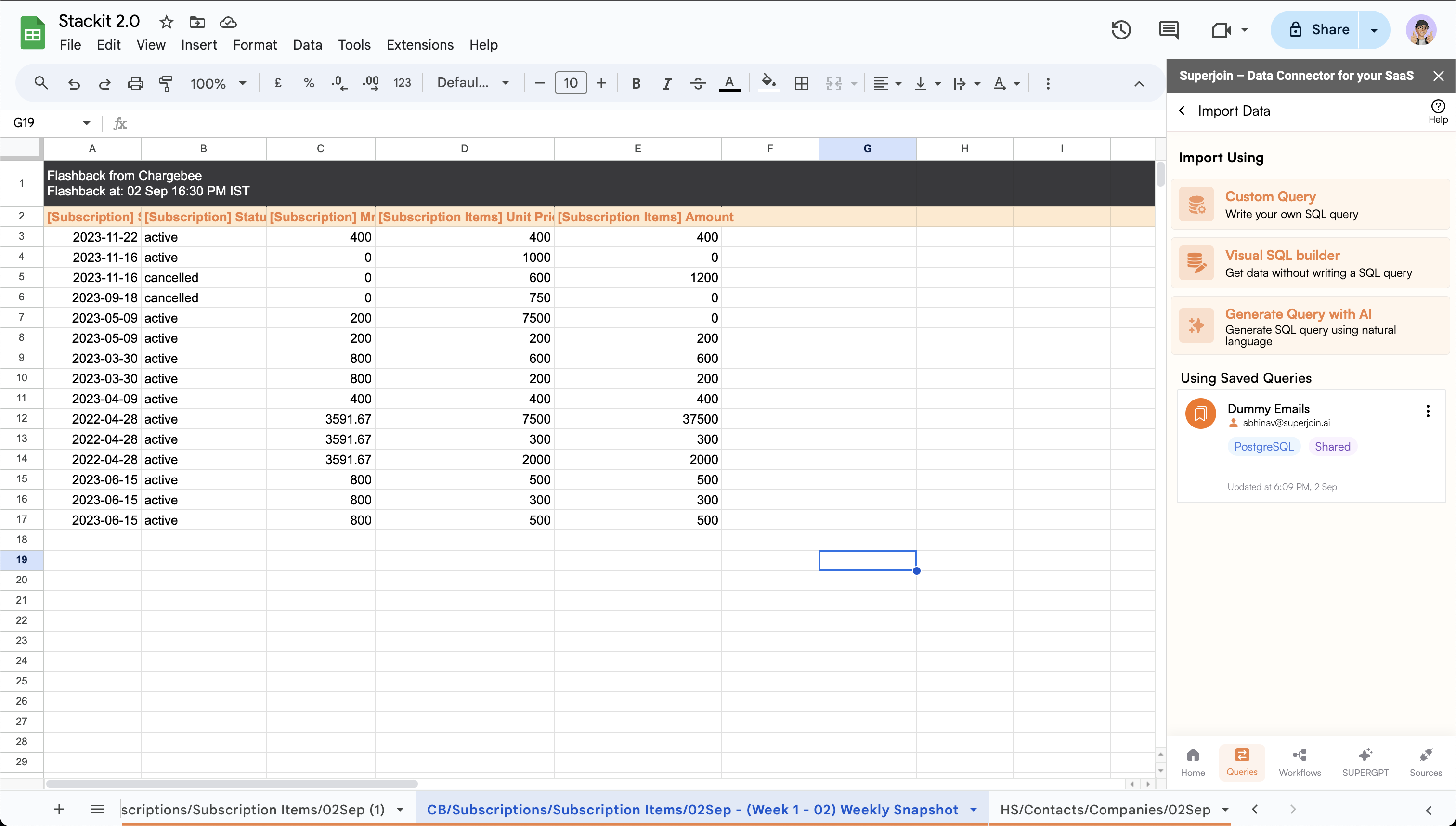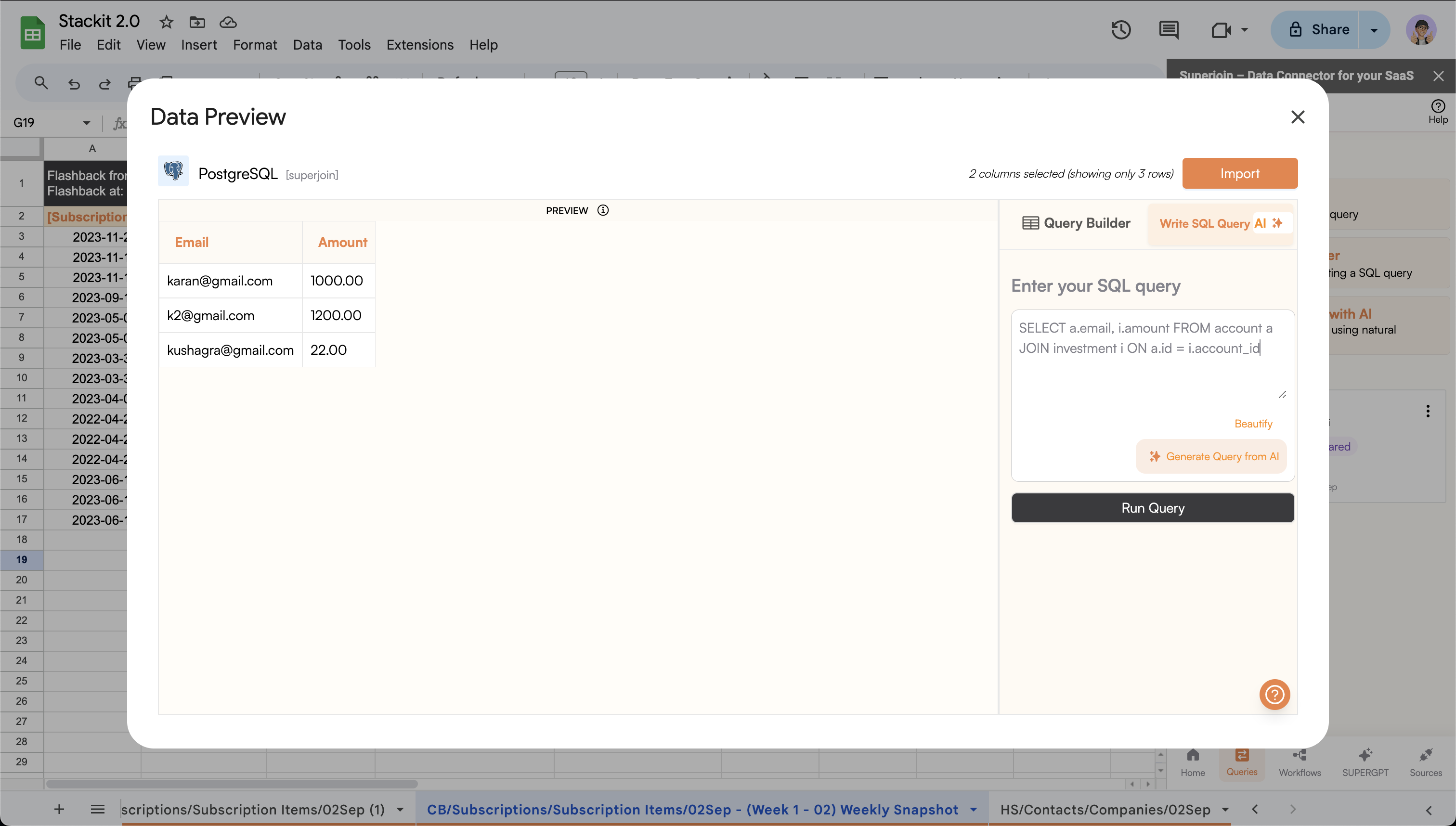 to use the visual SQL builder. - Select a table and its desired columns to import.