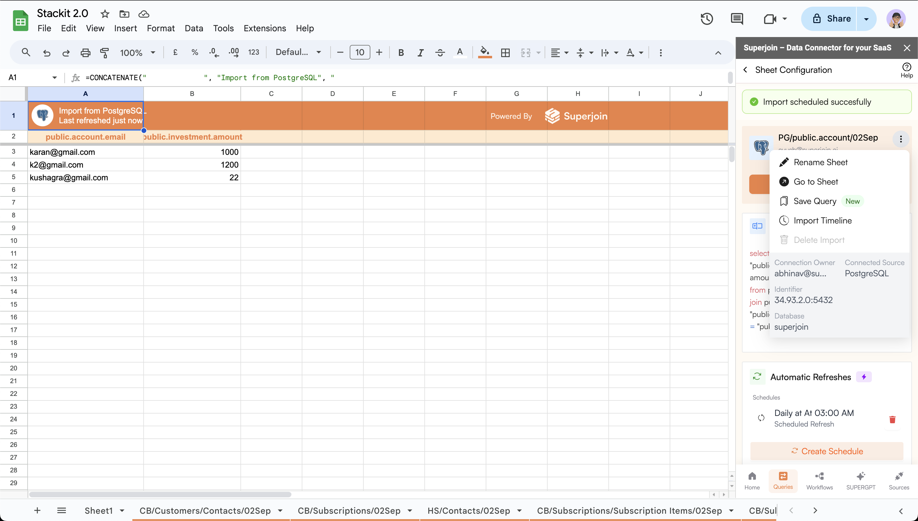 to import the data and wait for the data to be imported (optionally, create a refresh schedule).- Click on the
