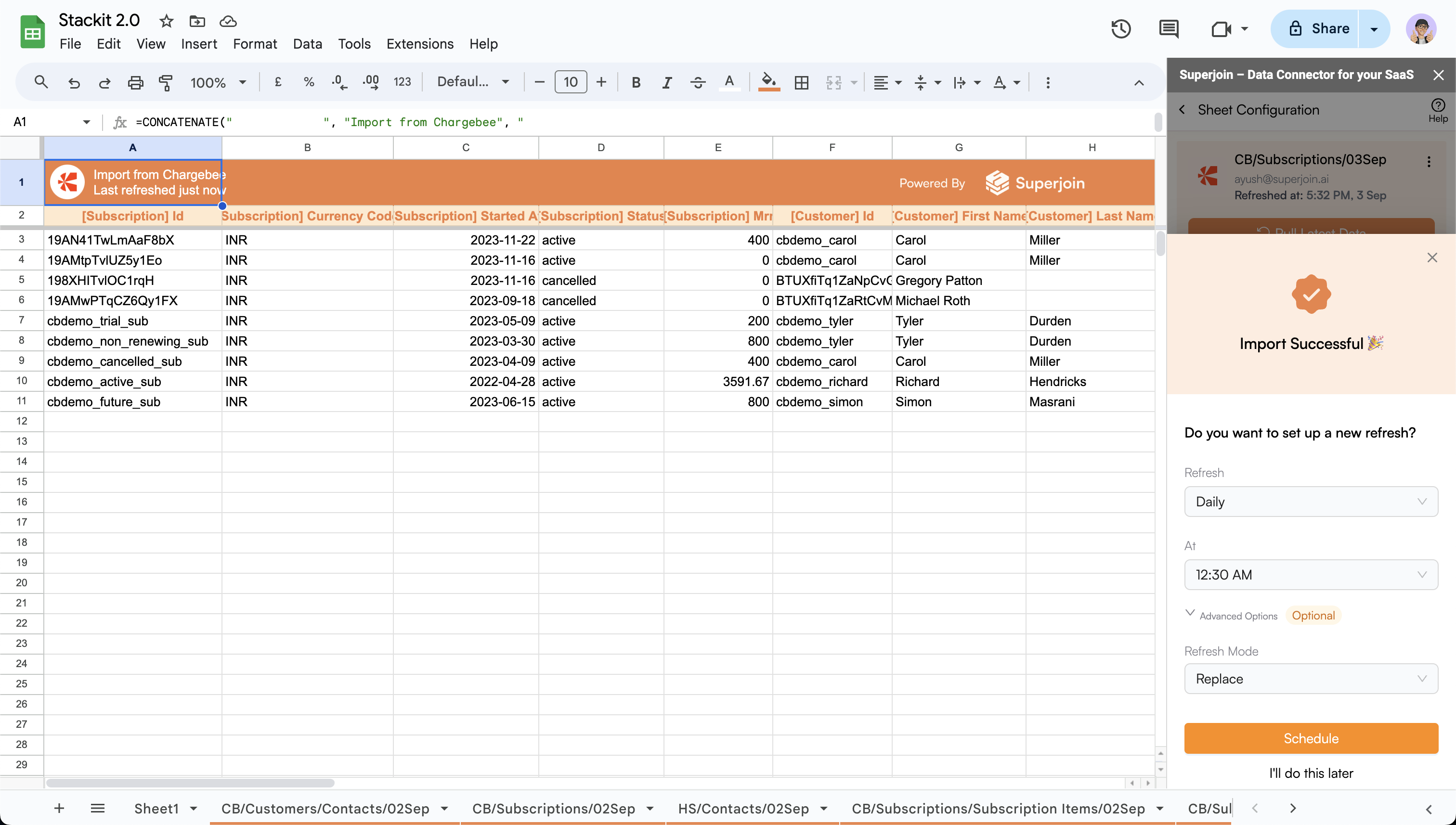 After a successful import, a drawer will open up with the option to create a scheduled refresh.