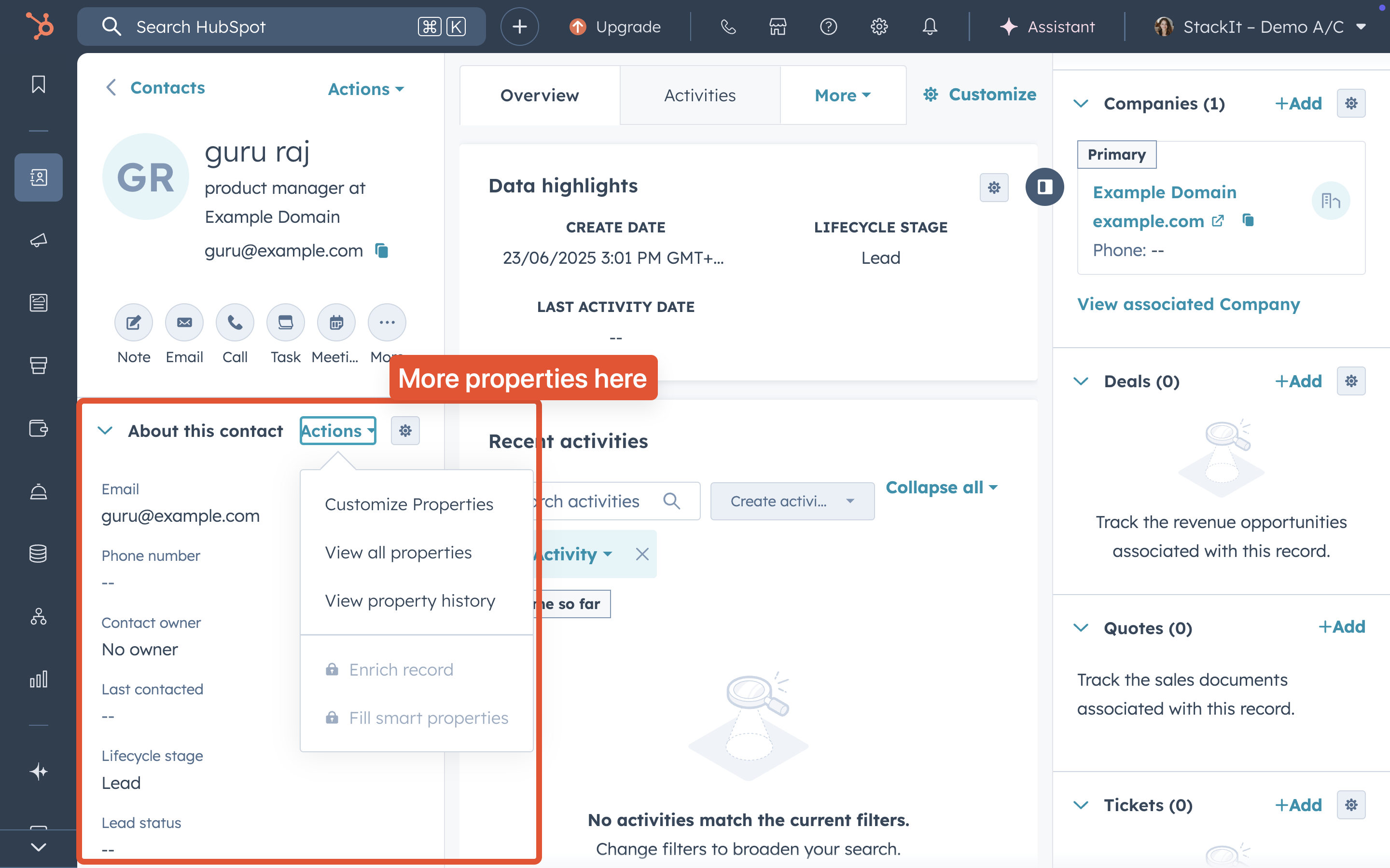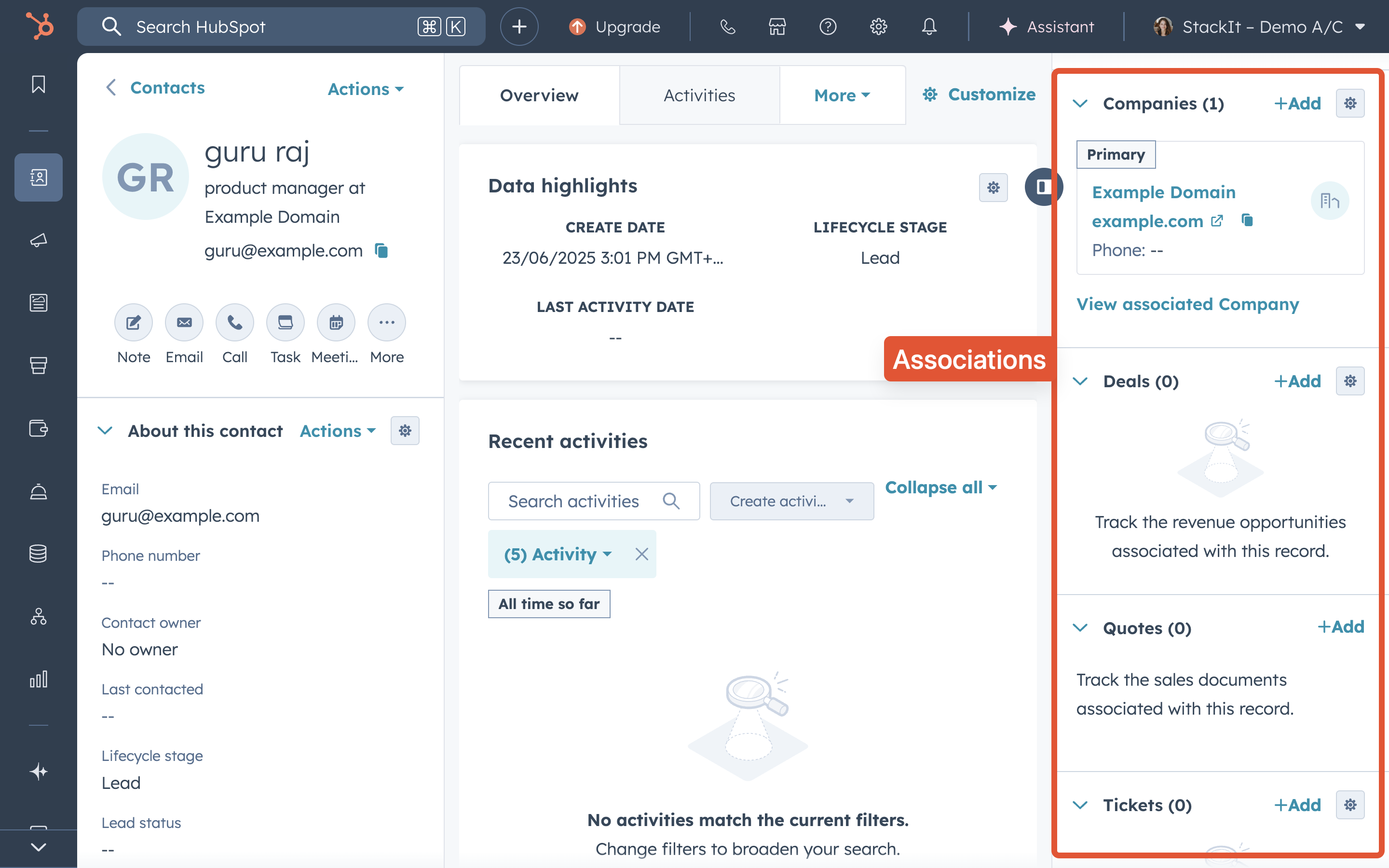 Primary Associations: In HubSpot, a primary association is the main record that another record is linked to, most commonly a primary company for a contact or deal. For example, if a contact works at multiple companies, the primary company is the main one they’re associated with, and you can manually set or automatically assign this label. This designation is used in HubSpot tools like lists and workflows to identify the principal relationship.