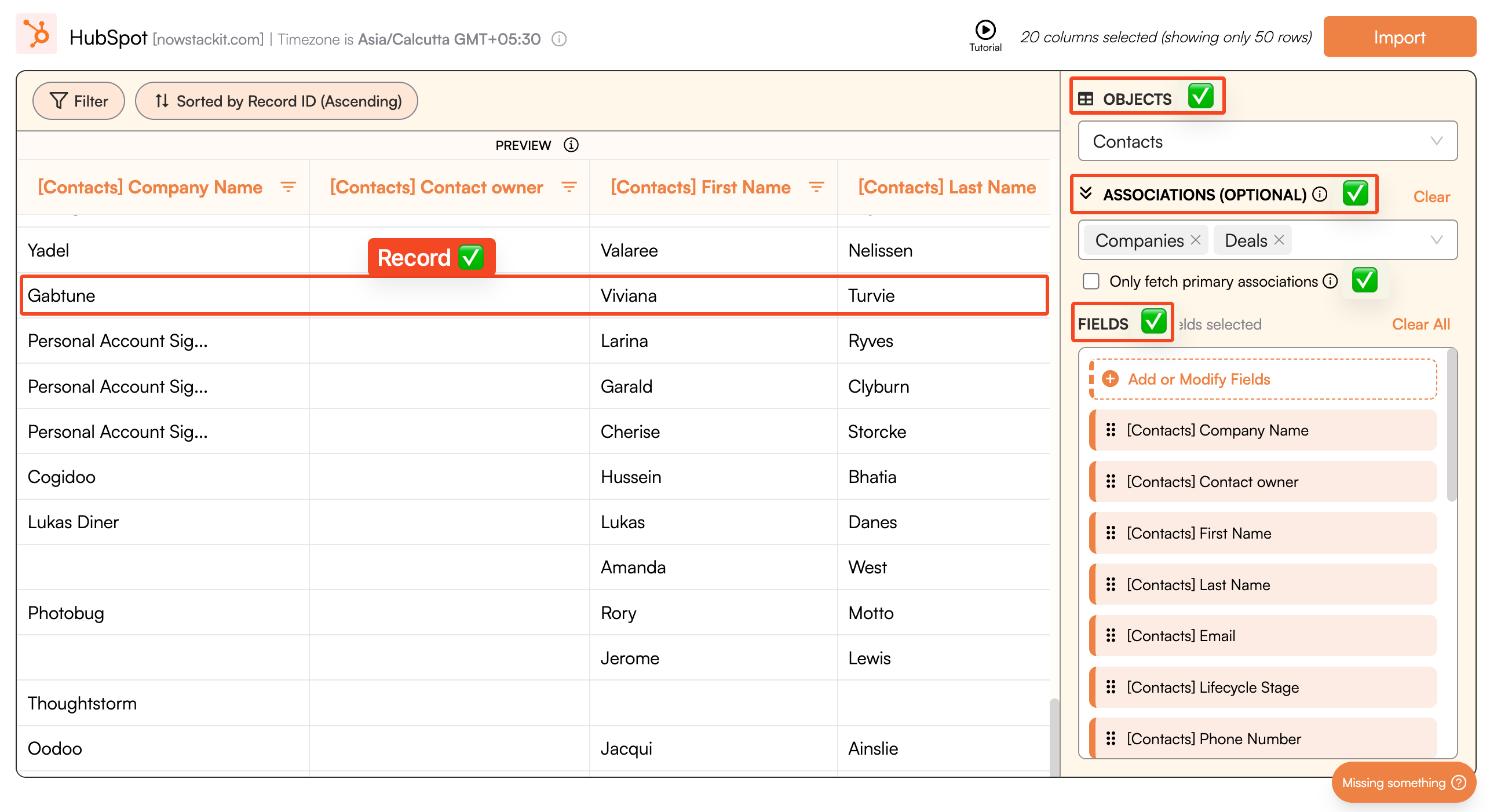 Here is the visual representation of HubSpot’s data model in Superjoin when importing data from HubSpot to Google Sheets.