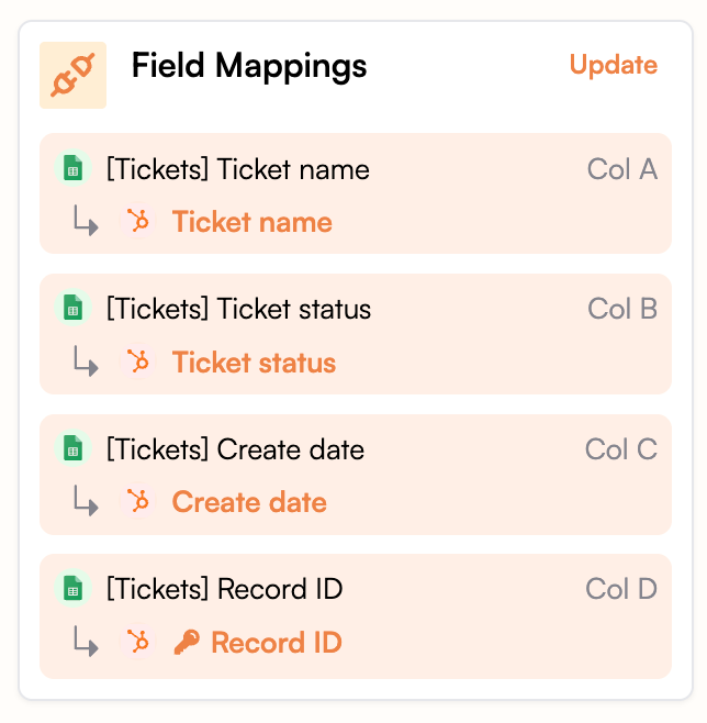 Is an important step in your Export process where you map the columns in your Google Sheets to the fields/properties in your Source (HubSpot or Salesforce). This is a crucial step because if the fields are not mapped correctly, the data will not go to the right place in your Source.