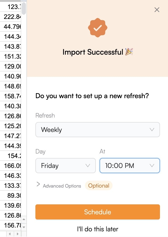 Enjoy one-click refreshes or schedule regular updates to ensure your sheets are always up to date.