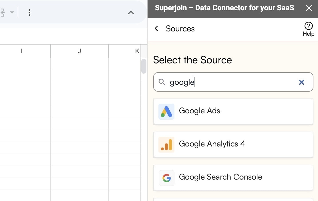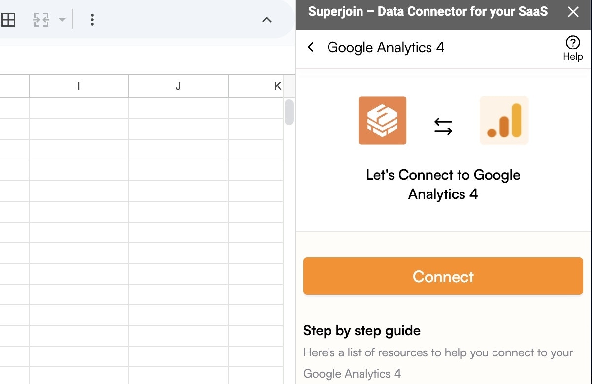 menu tab in Google Sheets. Launch Superjoin from here. You should now see Superjoin running as a side panel on the right side of your screen.