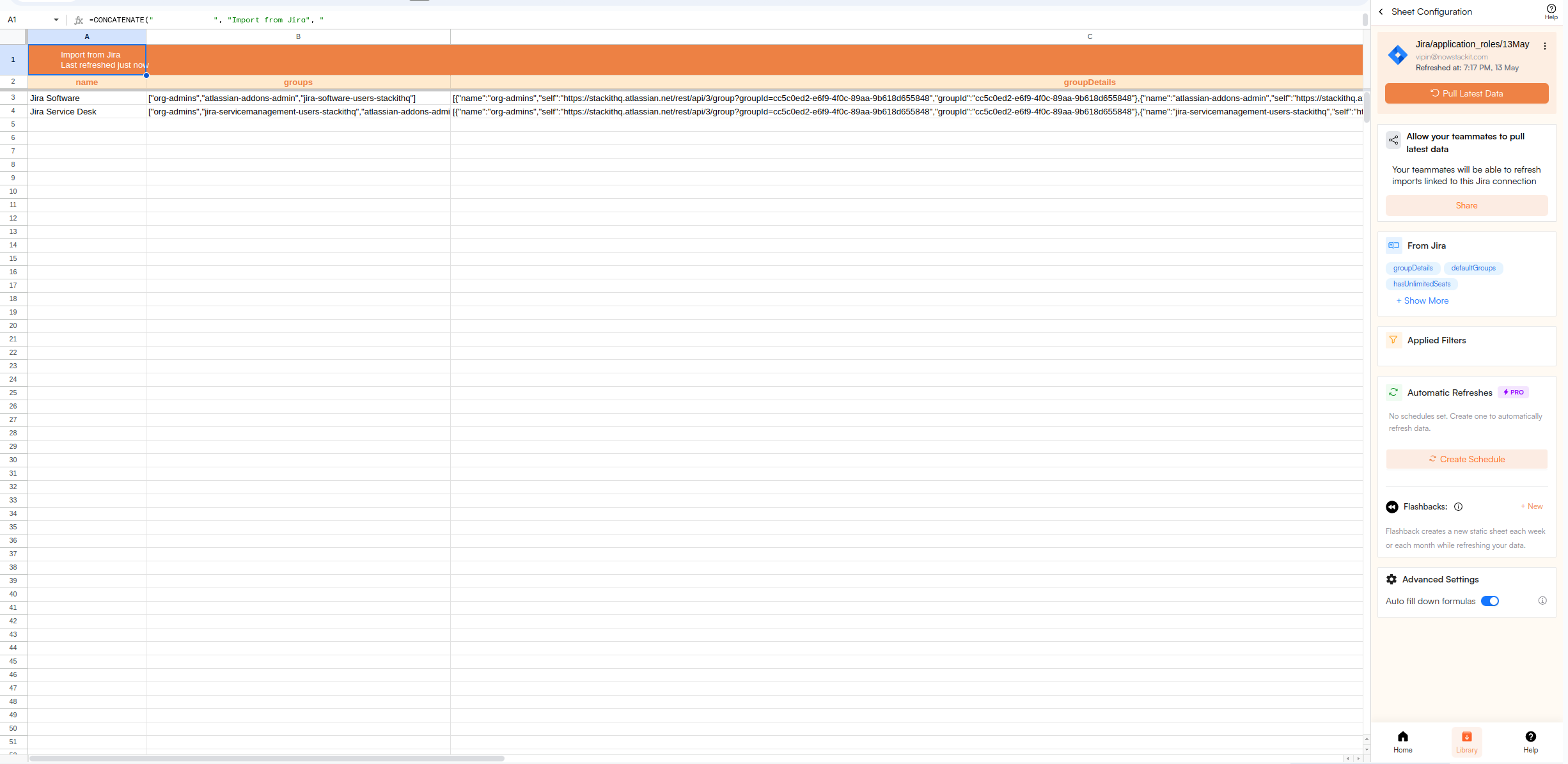 Superjoin lets you refresh your imported data instantly with one click or set it to auto-refresh on a pre-set schedule. This way, you won’t need to manually update your Jira data in Google Sheets to reflect changes from the source.