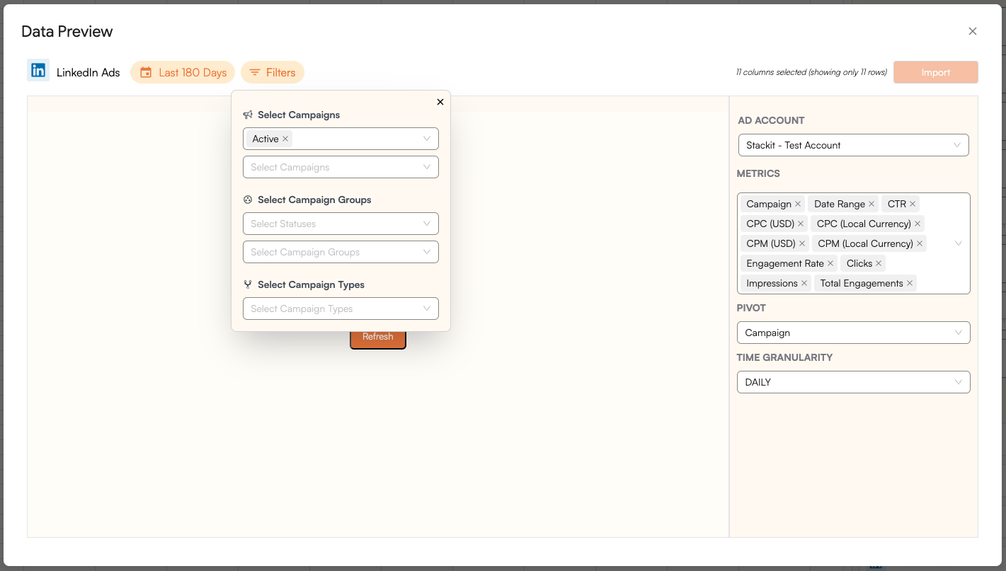 Superjoin lets you refresh your imported data instantly with one click or set it to auto-refresh on a pre-set schedule. This way, you won’t need to manually update your Linkedin Ads data in Google Sheets to reflect changes from the source.