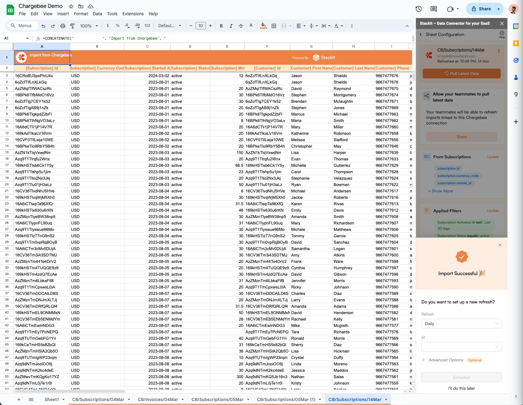 Enjoy one-click refreshes or schedule regular updates to ensure your sheets are always up to date.