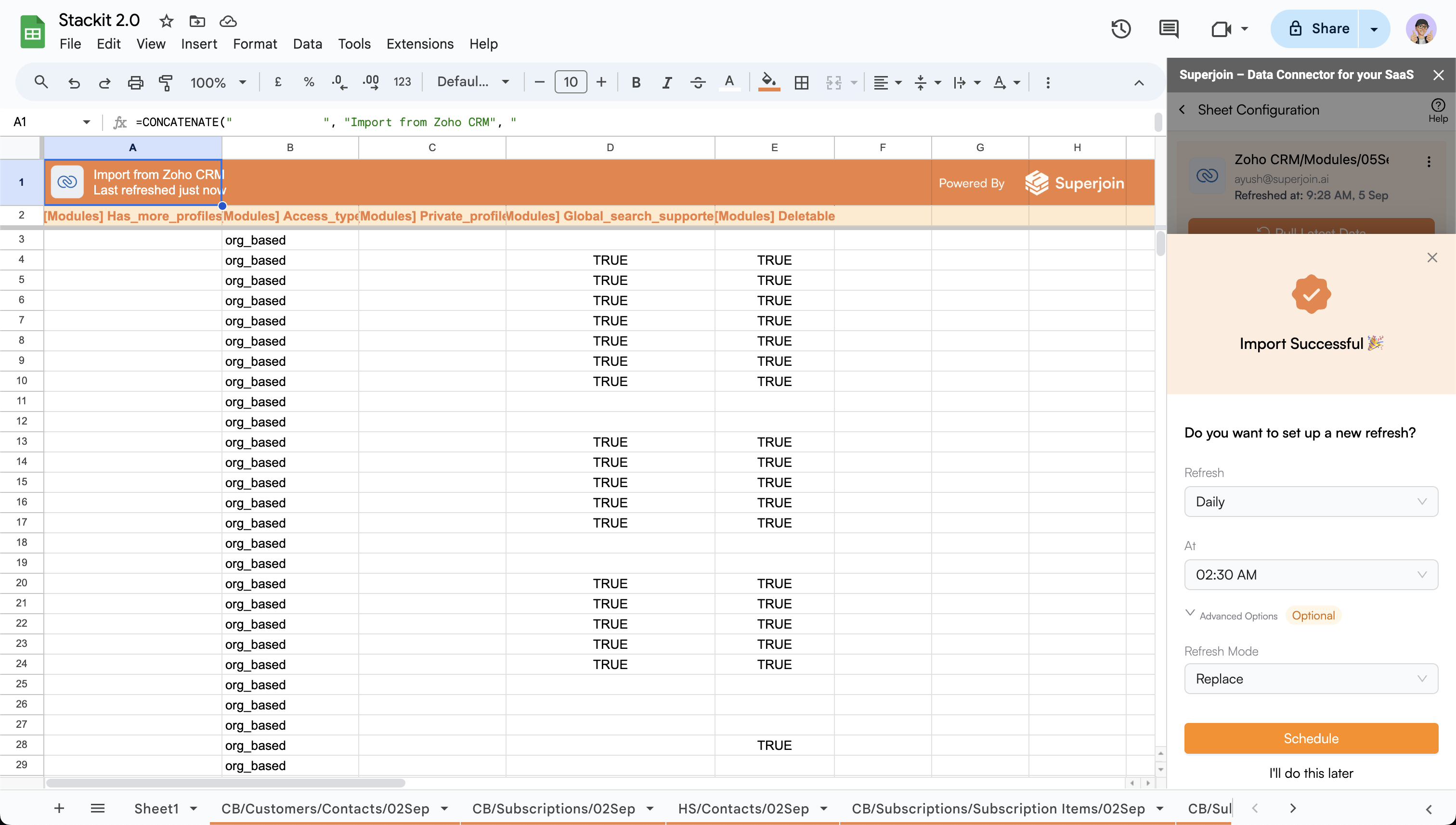 Superjoin lets you refresh your imported data instantly with one click or set it to auto-refresh on a pre-set