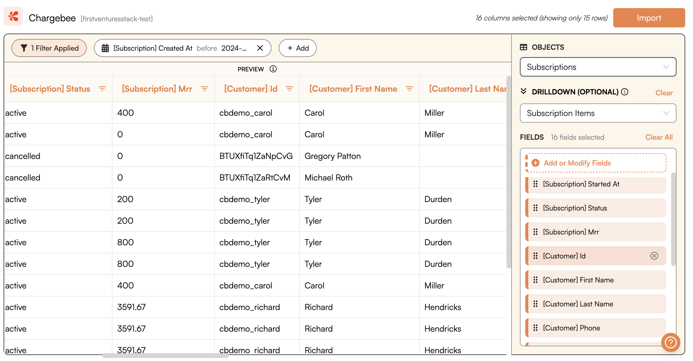 After connecting your account, a data preview window will appear, allowing you to modify your