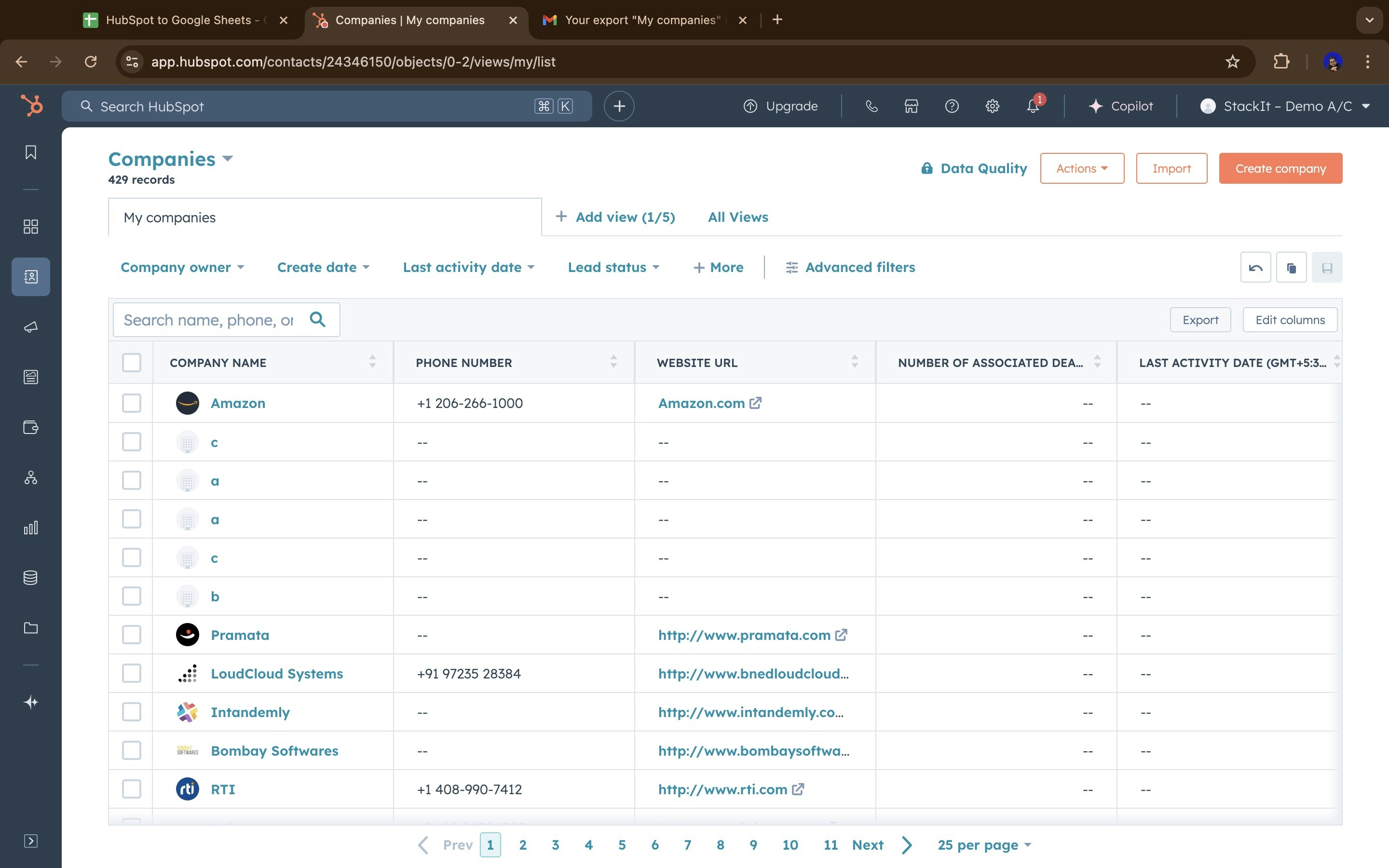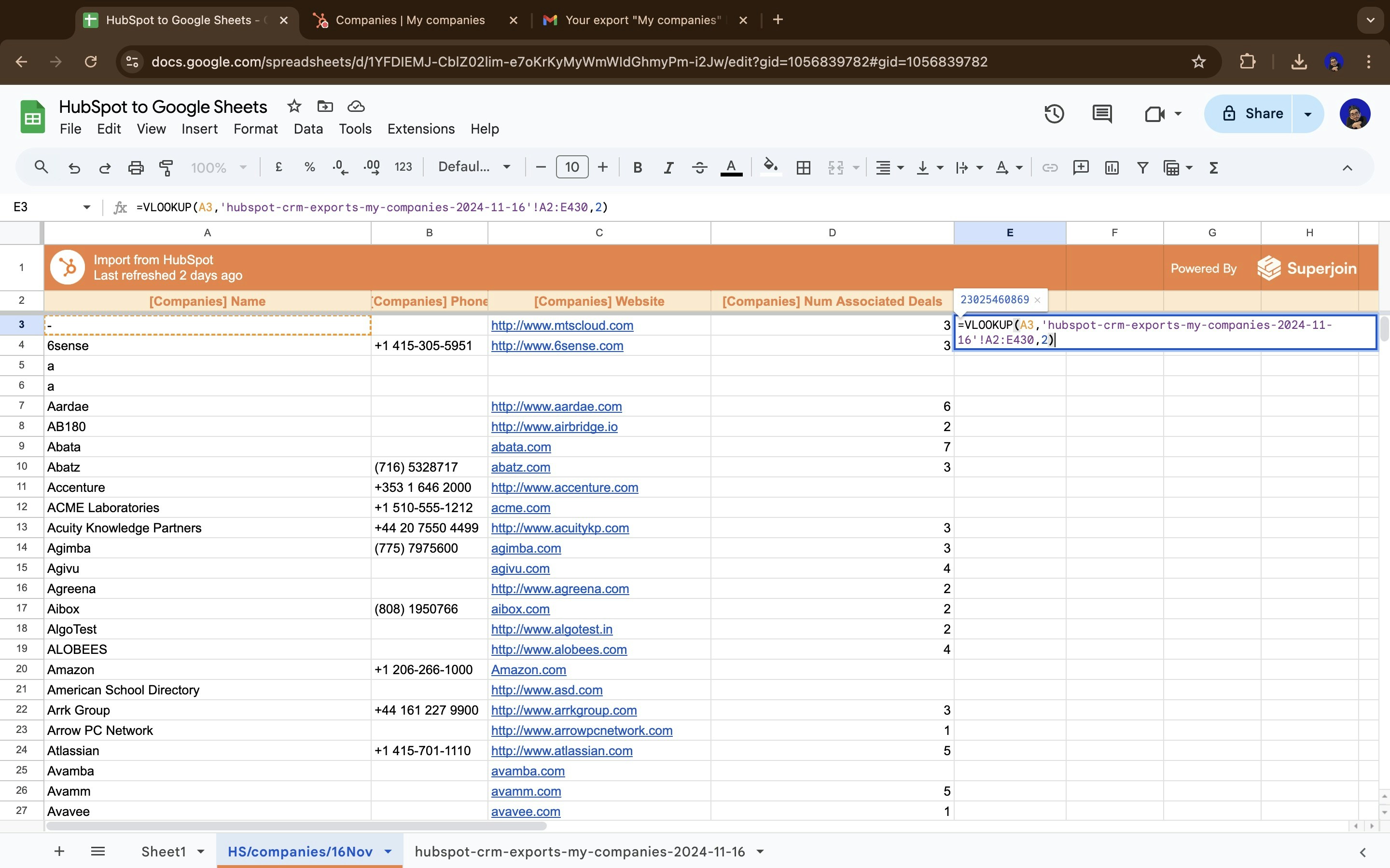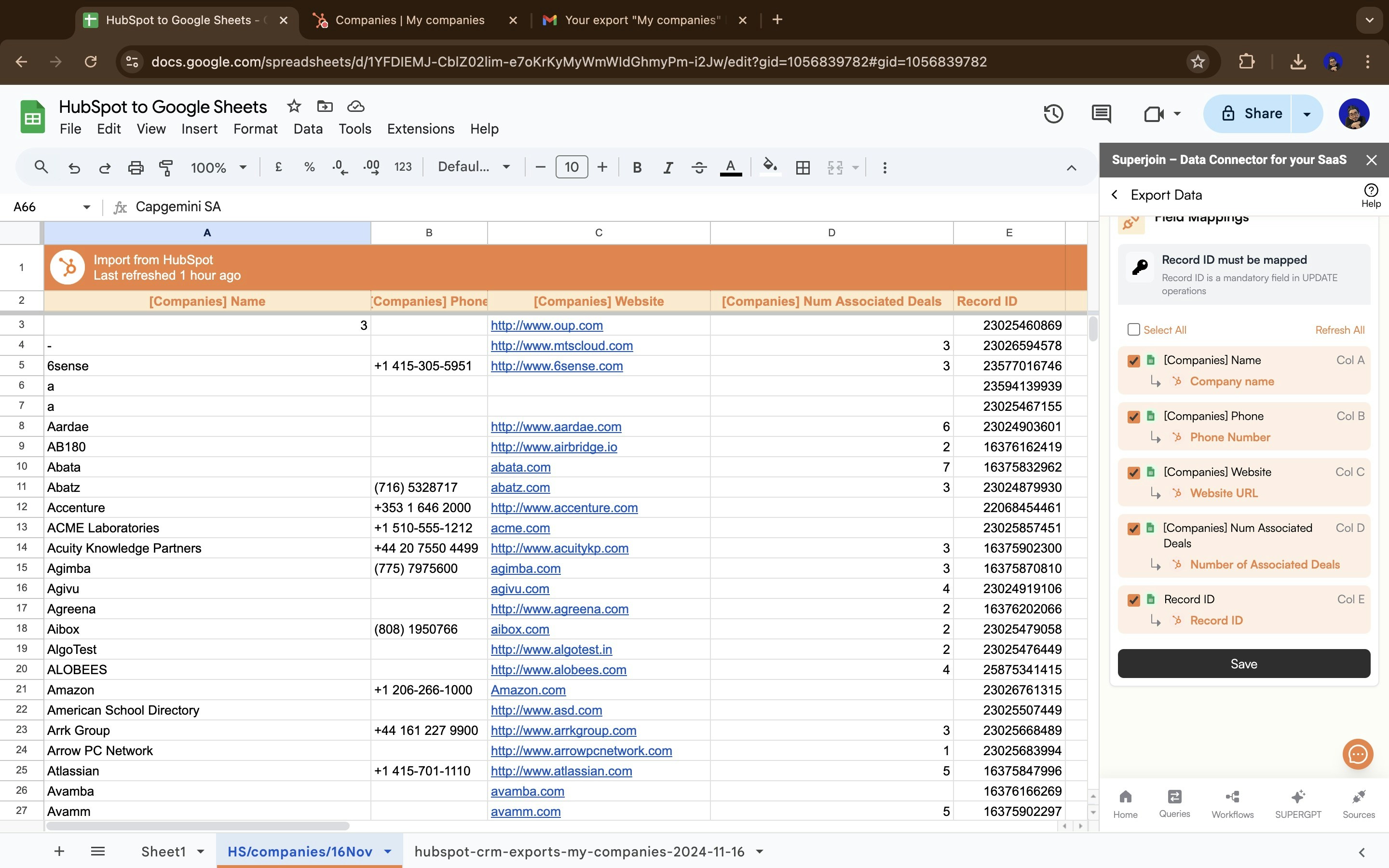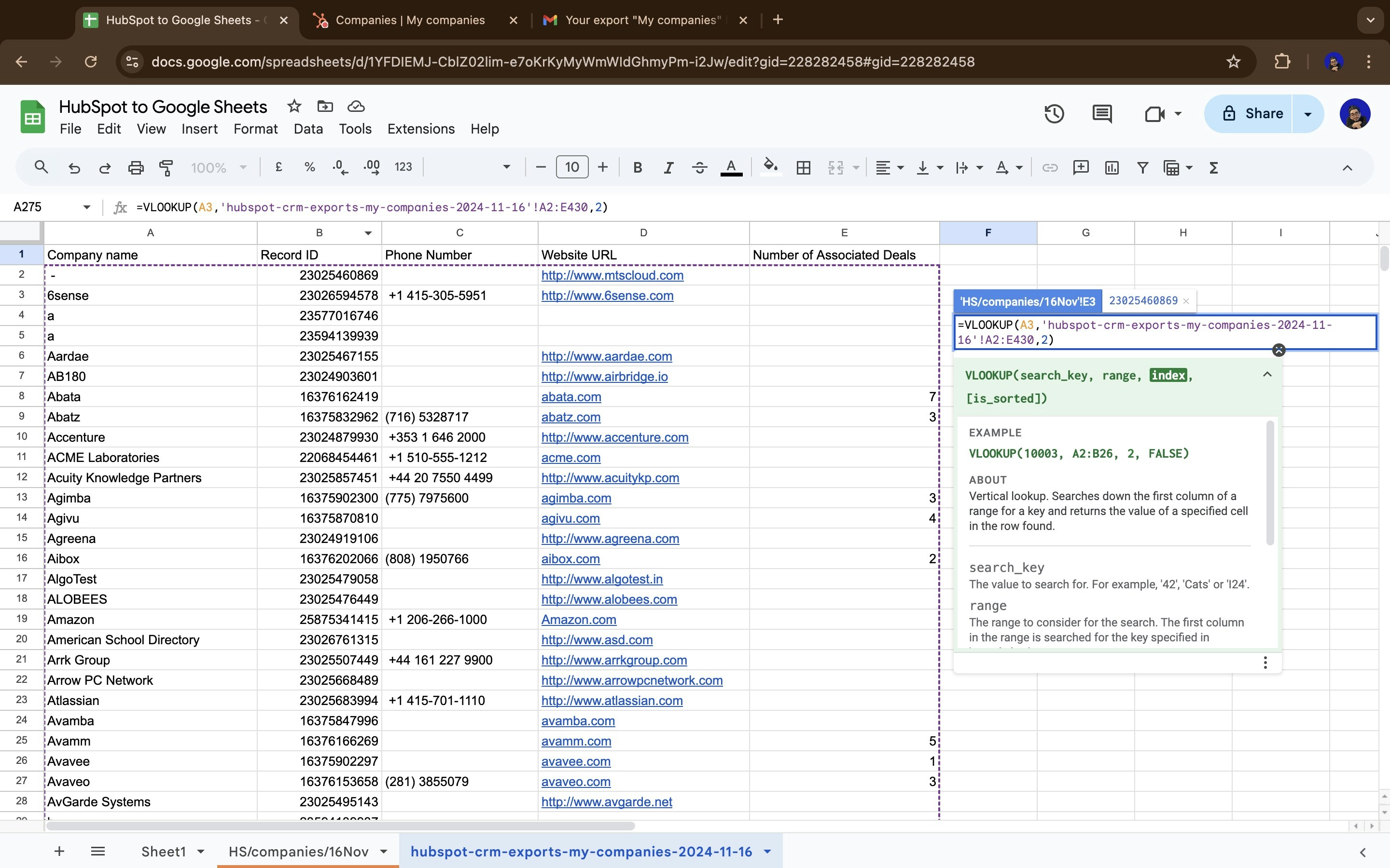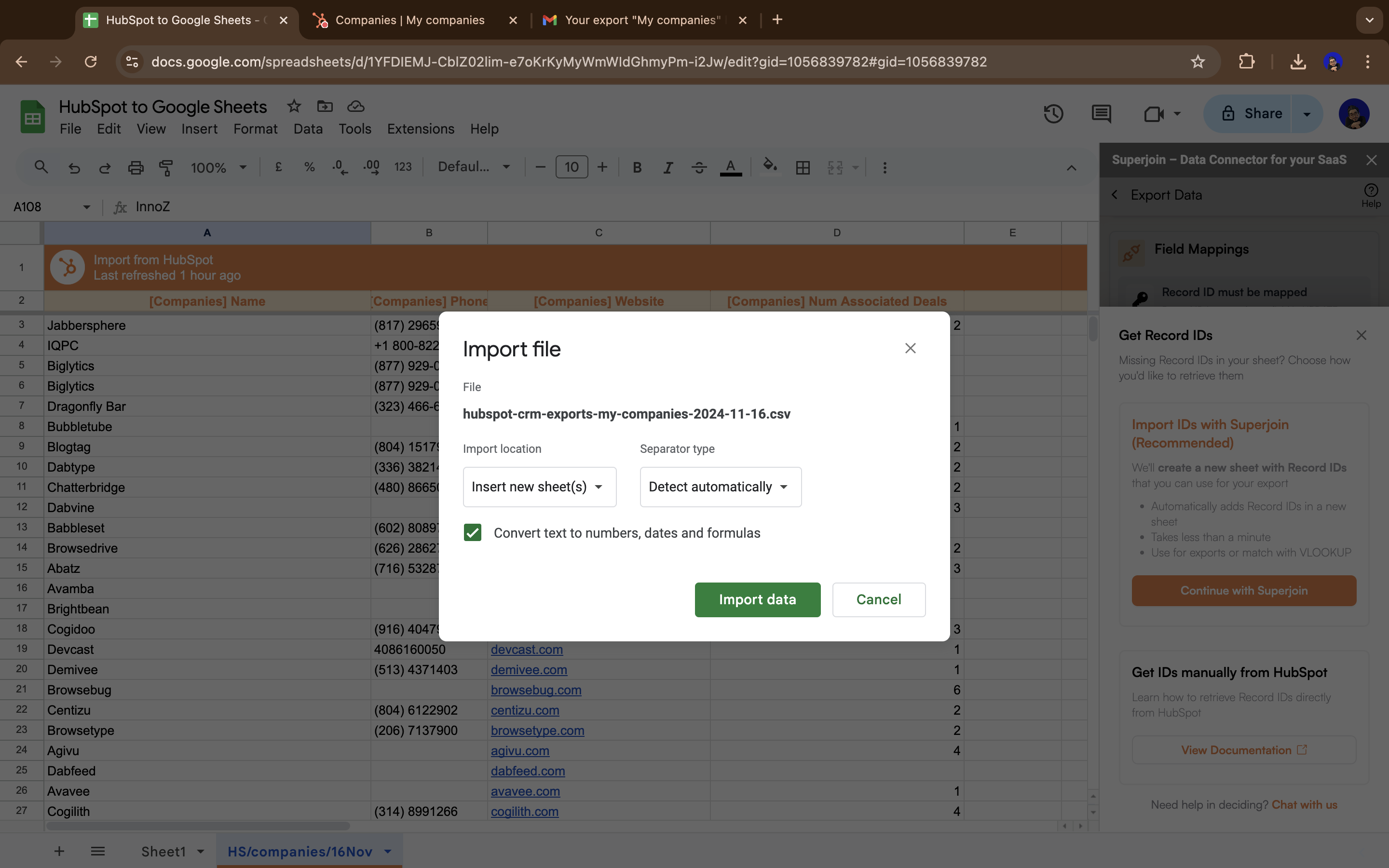 Gather the relevant Record IDs by matching the Data between Sheets and HubSpot