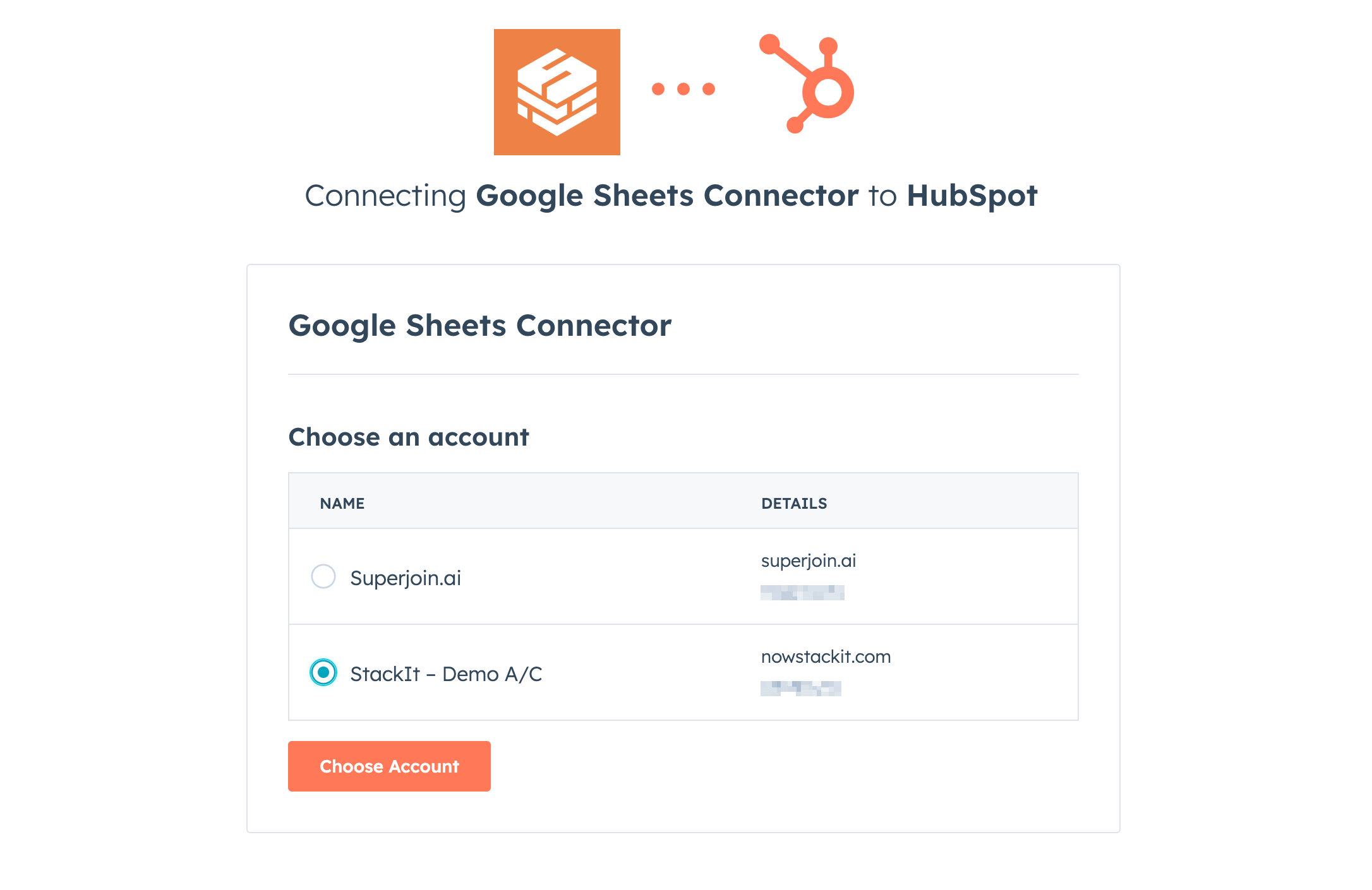 In case of multiple HubSpot accounts, choose the one you want to import the data from.
