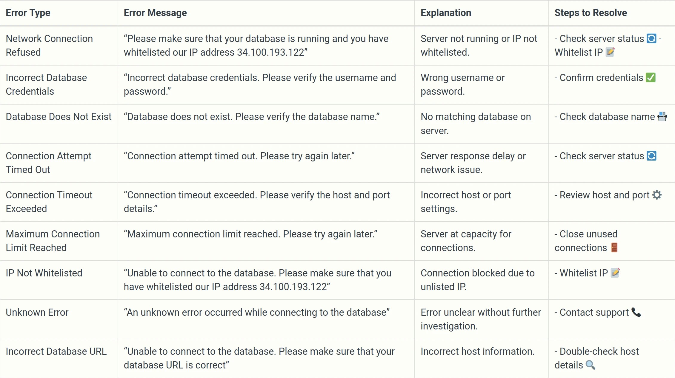 Error Message: Please make sure that your database is running and you have whitelisted our IP address 34.100.193.122