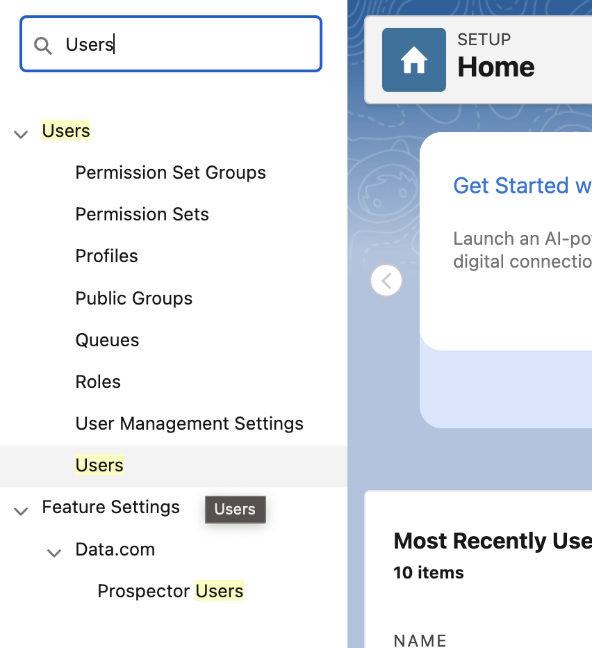 Navigate the the Users page. You may use the search bar on the left side of the page to find the Users page.The option is found under Users in the left navigation menu. (Users > Users)