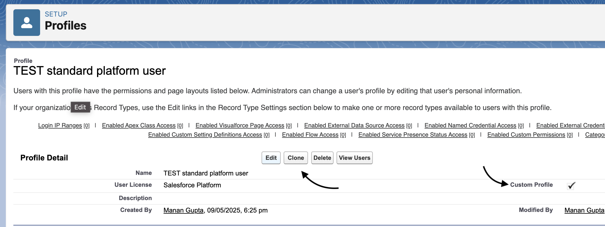 Click on Edit button to modify the settings for the Profile. and then scroll down to General User Permissions section.