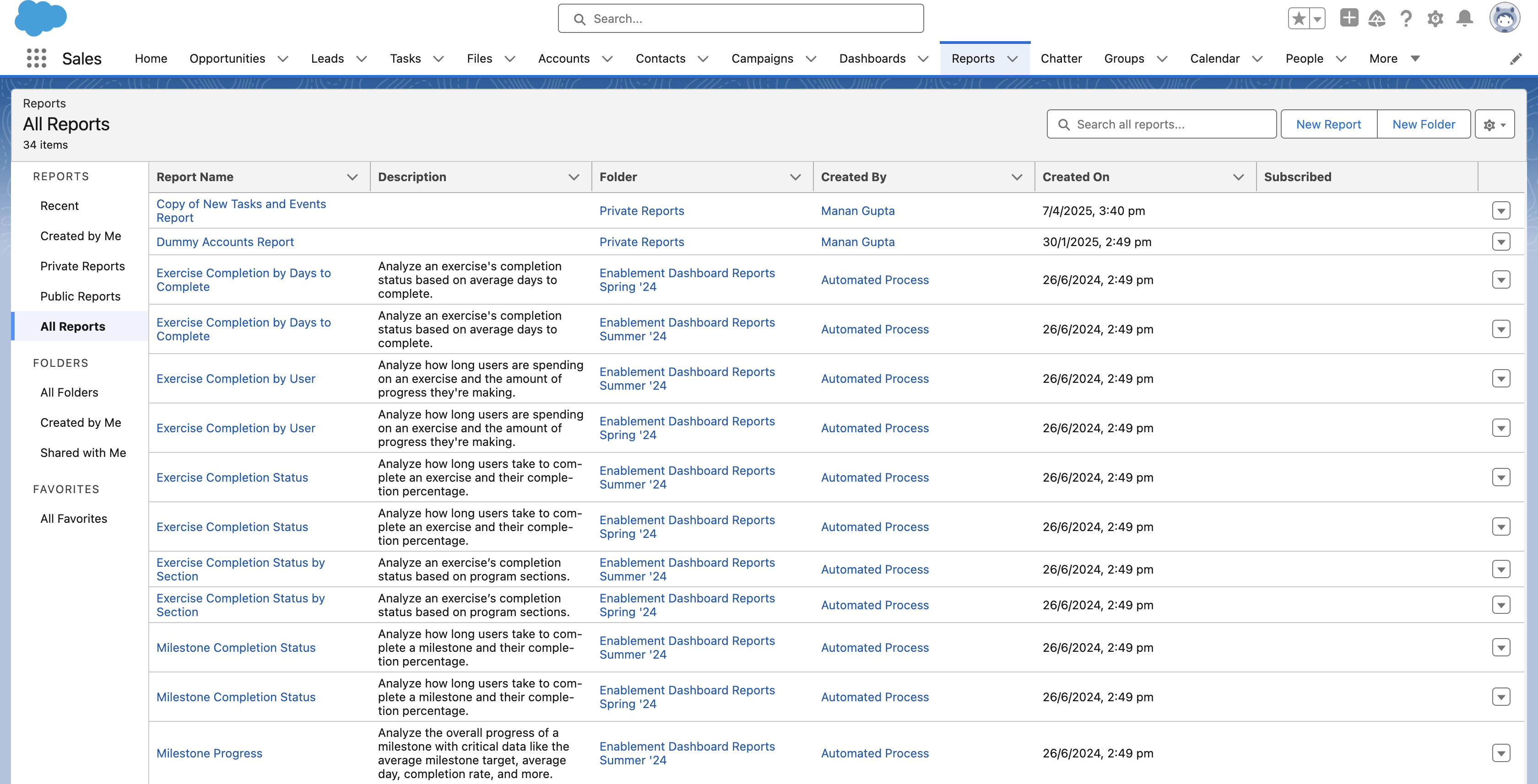 On a new web browser tab, navigate to your Salesforce account. Make sure to select the same account that you are using in Superjoin. Navigate to Reports Tab.Locate the report you want to access and click on it.