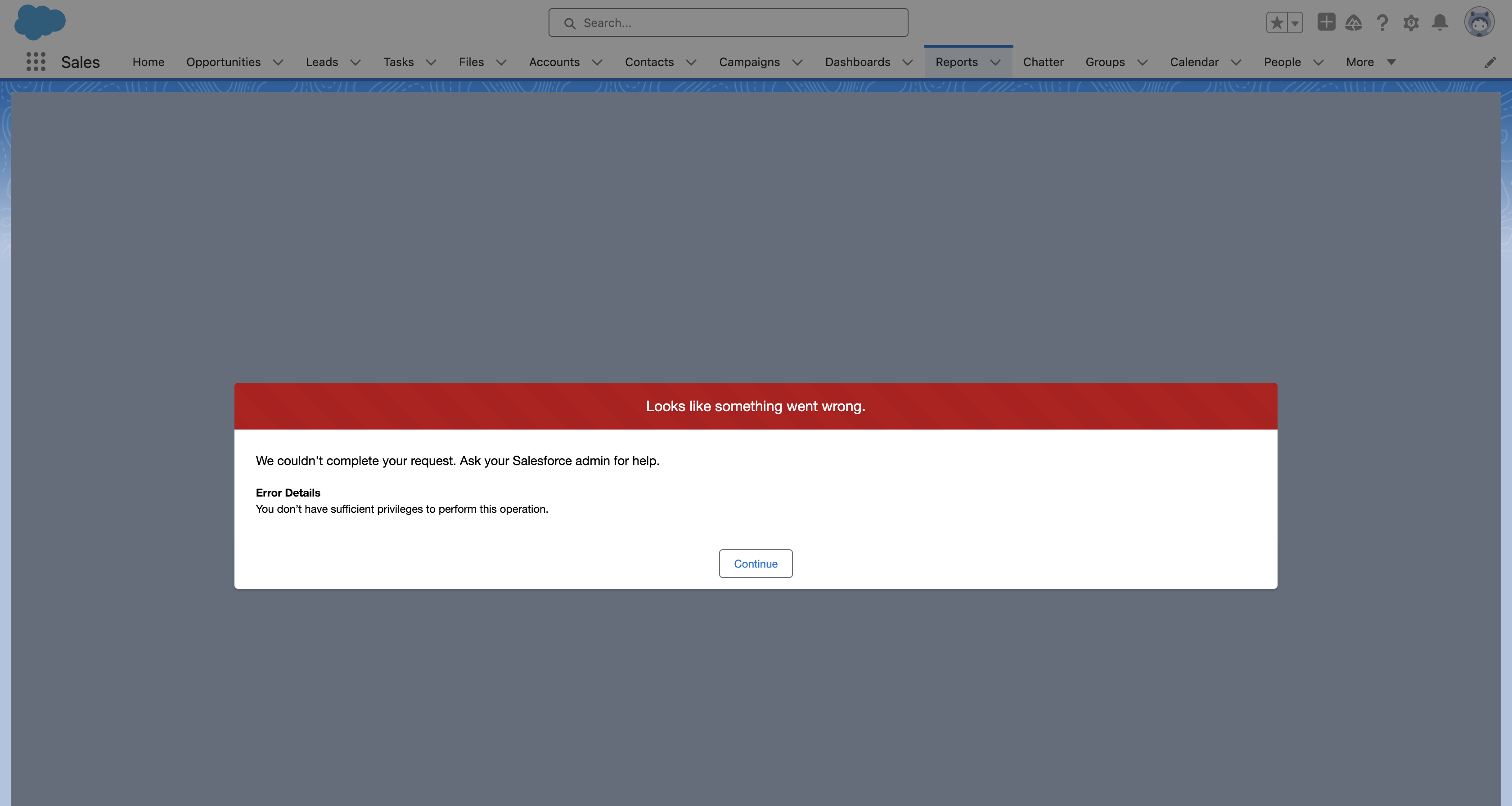Confirm with your Salesforce administrator about the specific policies preventing report access.