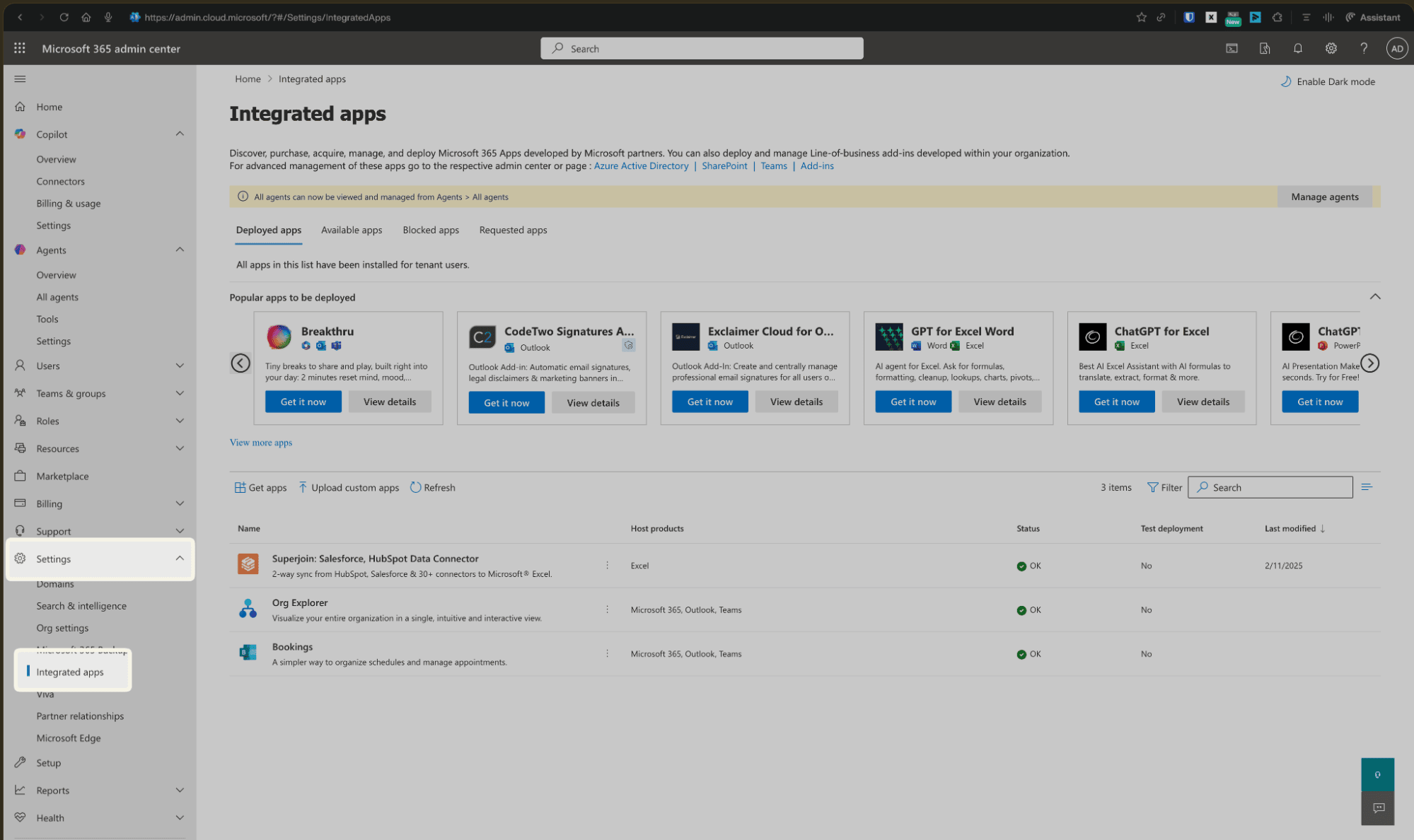 Navigate to Integrated Apps